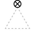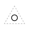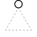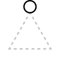 • Ingungwana, the nasalization marker, is a circle that sits at the top of the triangle, touching its apex. This is distinct from the bilabial nasal /m/ (ingungu) that appears on its own, as this one occurs with other consonant graphemes. In this case, no additional lines need to be added to the ingungwana, as the place of articulation is given by them instead.
