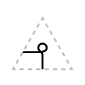 • Lerothodi, the glottal action dot, is a dot that floats just above the base of the triangle, inside it. When an uphimbo is present, the dot can be moved slightly to a side, and if a consonant shape is in the way, even further, for visibility. This symbol modifies the airstream mechanism of the consonant.