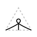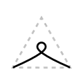 The apex of the triangle or chevron corresponds to vowel height or frontedness, with high vowels /i/ and /u/ pointing upwards and the low vowel /a/ pointing downwards. Likewise, the front vowels /ɛ/ and /e/ point leftwards and the back vowels /ɔ/ and /o/ point rightwards.