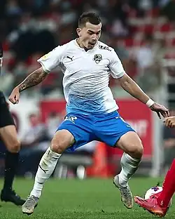 Dmitry Dmitriyevich Vorobyov (Russian: Дми́трий Дми́триевич Воробьёв; born 28 November 1997) is a Russian football player who plays for Lokomotiv Moscow and the Russia national team. He plays as either a centre-forward or a winger.