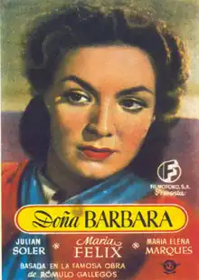 Doña Bárbara is a 1943 Mexican romantic drama film directed and co-written by Fernando de Fuentes and starring María Félix and Julián Soler. The film is based on the 1929 novel Doña Bárbara by Venezuelan author Rómulo Gallegos, who also co-wrote the screenplay.