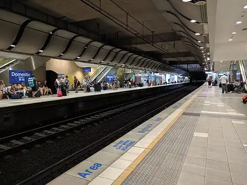 Domestic Airport is a train station located on the Airport Link, serving Terminals 2 and 3 at Sydney Airport, Australia. International Terminal 1 is served by International Airport station. The station is operated by Sydney Trains with T8 Airport & South Line services.