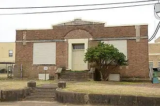 It is a single-story brick building, designed by Thompson & Harding and built in 1917. The building features an eclectic combination of Prairie Style and Colonial Revival elements; its geometric parapet is in the former style, and its columned entrance portico is stylistically the latter.[3]