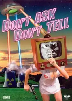 Don't Ask Don't Tell is a 2002 parody film directed by Doug Miles and written by famed gay screenwriter Tex Hauser. The 2002 winner of the Boston Underground Film Festival (BUFF) Bachus Award and the Neuchatel Sci-Fi Fest Audience Choice Award, the film was created by taking an old sci-fi movie—Killers from Space—overdubbing the soundtrack with humorous dialogue, and adding some new scenes, essentially turning it into an entirely different movie. The plot involves alien invaders with a machine that turns straight people gay.
