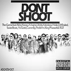 "Don't Shoot" is a single by American rapper the Game featuring Rick Ross, 2 Chainz, Diddy, Fabolous, Wale, DJ Khaled, Swizz Beatz, Yo Gotti, Currensy, Problem, King Pharoah and recording group TGT performing the chorus. The Game's daughter also joins in at the end but is uncredited. The song is a tribute to Michael Brown.[1]