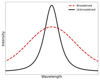 In astronomy and plasma physics, the thermal Doppler broadening is one of the explanations for the broadening of spectral lines, and as such gives an indication for the temperature of observed material. Other causes of velocity distributions may exist, though, for example, due to turbulent motion. For a fully developed turbulence, the resulting line profile is generally very difficult to distinguish from the thermal one.[2] Another cause could be a large range of macroscopic velocities resulting, e.g., from the receding and approaching portions of a rapidly spinning accretion disk. Finally, there are many other factors that can also broaden the lines. For example, a sufficiently high particle number density may lead to significant Stark broadening.