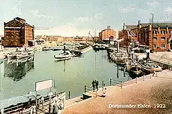 For transporing general cargo it did make sense to give barges their own propulsion. On 9 March 1899, the steamboat (Frachtdampfer) Dortmund entered the new harbor of Dortmund from downstream.[10]