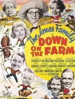 Down on the Farm is a 1938 American comedy film directed by Malcolm St. Clair and starring Jed Prouty, Spring Byington and Louise Fazenda. It was part of Twentieth Century Fox's Jones Family series.[1] The family go to stay at their aunt's farm.