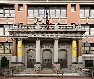 Dr. Ronald E. McNair Academic High School (often dubbed Academic previous to its dedication, or as McNair) is a magnet public high school located at 123 Coles Street in Jersey City, in Hudson County, in the U.S. state of New Jersey. The school is named in memory of Dr. Ronald E. McNair, the astronaut and scientist who died in the Space Shuttle Challenger disaster. McNair is part of the Jersey City Public Schools district. The school has been accredited by the Middle States Association of Colleges and Schools Commission on Elementary and Secondary Schools since 1979 and is under Probationary Accreditation status as of 2022.[4]