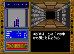 Gameplay-wise, Dragon Knight is a dungeon crawler typical for its era (similar to that of early Wizardry games). The exploration and combat are shown from the first-person perspective using a 2D engine, combat in the game is turn-based and enemies are encountered randomly (a similar system was also used in the first sequel). With each new floor, the mazes becomes more sophisticated (in the remake there is a helpful mini-map with grid coordinates), and enemies are getting stronger. The fights in the first game are difficult and unbalanced. The protagonist can attack, defend, and use spells and items to fight monsters (up to six (three in the remake) at once).