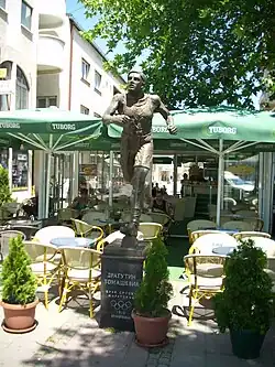 The men's marathon, which lasted 40.2 kilometres (25.0 mi), took place on 14 July amid record-breaking heat; half the participants did not finish.[3] The Portuguese marathon runner Francisco Lázaro died of heat exhaustion, the first of only two athletes ever to die in competition during the Olympic Games.[4] Tomašević completed the marathon in two hours and 47 minutes, and finished 37th out of sixty-eight runners, prompting speculation in the Serbian tabloid press that he had been poisoned by "a beautiful Swedish blonde" or "pushed into a ditch" and held there so as to be prevented from winning.[1] "As he came in battered and bruised," the sports writer Nigel McCrery writes, "it seems more likely that he fell or was pushed and injured, explaining his condition." The gold medal was won by South Africa's Ken McArthur, the silver by another South African, Christian Gitsham, and the bronze by the American Gaston Strobino.[5]