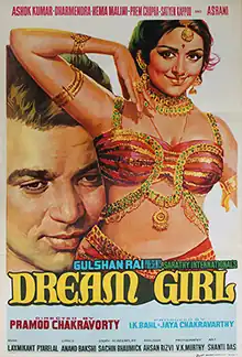 Dream Girl is a 1977 Hindi film, directed by Pramod Chakravorty. The movie stars Hema Malini, Ashok Kumar, Dharmendra and Prem Chopra. According to film expert Rajesh Subramanian Hema Malini was promoted as the Dream Girl by producer B Ananthaswamy from her first film and that eventually led her to star in this film.[1][2][3]