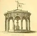 Also working in parallel were various organizations of the Temperance Movement, who advocated abstinence from alcohol, and saw providing free fresh water as an attractive alternative. furthering its cause. The Woman's Christian Temperance Union, founded in 1874, sponsored temperance fountains in towns and cities across the United States.[7] The Sons of Temperance built an elaborate and popular drinking fountain for Philadelphia's 1876 Centennial Exposition, later moved close to Independence Hall, that dispensed ice water.[8] Henry D. Cogswell, a dentist and temperance crusader who made a fortune in San Francisco real estate, sponsored (and designed) dozens of artistic fountains, some of which were adorned with a statue of himself.