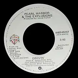 "Drivin'" was a moderately successful hit single for San Francisco band Pearl Harbor and the Explosions. It first was released on 415 Records, November 21, 1979.[1][2] Shortly after, it was re-recorded for the band's self-titled debut LP on Warner Bros, and that version was also released as a single.