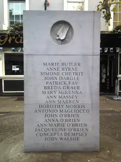 Twenty-three people died in these explosions and three others died from their injuries over the following few days and weeks. Many of the dead were young women originally from rural towns employed in the civil service. An entire family (parents and their two children) from central Dublin was killed.[10] Two of the victims were foreign: Antonio Magliocco, an Italian man, and Simone Chetrit, a French Jewish woman whose family had survived the Holocaust.[11][12]