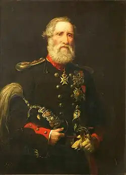 During this period a royal commission was started to investigate the practice of purchasing commissions in the British Army. MacDougall's old comrade Evans was an opponent of the practice, and in May 1856 he brought forward MacDougall as a sympathetic witness. He gave testimony describing the negative impact on officers who were passed over for promotion in favour of those who could purchase the rank. The commission decided not to abolish the purchase system, but published a detailed report including the criticisms of it. MacDougall's opinion was widely quoted in newspapers such as The Standard and The Times.[28] He resigned his commission in the militia and departed from the Royal Lancashire Militia Artillery on 27 April 1857.[29]