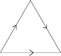 In topology, the dunce hat is a compact topological space formed by taking a solid triangle and gluing all three sides together, with the orientation of one side reversed. Simply gluing two sides oriented in the opposite direction would yield a cone much like the dunce cap, but the gluing of the third side results in identifying the base of the cap with a line joining the base to the point.[1]