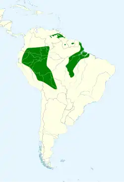The dusky-billed parrotlet is found in the Amazon Rainforest in South America, where it is locally fairly common; it also occurs in the Andes and the Amazonian foothills, the Amazon River outlet, and Marajo Island.