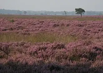 Dwingelderveld National Park is a national park of the Netherlands in the province of Drenthe, founded in 1991. The park covers about 37 km2 (14 sq mi) and is mainly managed by the State Forest Service (Staatsbosbeheer) and the most important Dutch private nature management organisation Natuurmonumenten. It is the largest wet heathland of Western-Europe. Dwingelderveld is also designated as a Natura 2000-area.