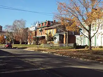 The core of the district contains two 1836 plats, with a series of fine residential mansions along Elm Avenue. A few early suburban houses are still scattered north of Elm. The remainder of the district contains more modest houses built during the latter part of the 19th century and the early 20th century.[3]