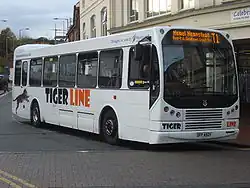 Six refurbished Leyland Tigers were given Hyline bodies for Strathtay Scottish,[11][12] while two were built on the Volvo B10M chassis for Jones of Login and Bagnall's of Swadlincote, these differing from the Tiger bodies by being built with bonded glazing and an emergency exit located at the rear offside.[13] The concept was not a great success and after no further orders followed, the Hyline body was discontinued in 2002,[note 1] representing the end of rebodying for the bus industry in the United Kingdom.