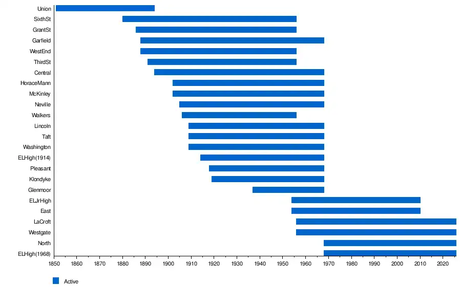 | Taft School | 1909 | 1968 | Currently Wee the People Preschool and Daycare III |