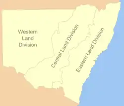 The Eastern Division of New South Wales is one of the three cadastral divisions of New South Wales along with the Central and Western divisions, established under the Crown Lands Act of 1869 for the purposes of land management and the separation of metropolitan and rural/regional areas. It is the most populated of the divisions, including Sydney and large coastal cities such as Newcastle and Wollongong. In 1907 it included the Armidale, Port Macquarie, Grafton, Maitland, Dungog, Scone, the Blue mountains, Sydney, Goulburn, Lismore, Coffs Harbour and Orange land boards, as well as the eastern part of the Wagga Wagga, Dubbo and Tamworth land boards.[4]