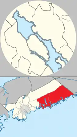 The largest water formation by far is the Chedabucto Bay, at the eastern end of the Eastern Shore.[21] There also numerous, albeit much smaller, bays, harbours and other coastal features along the Eastern Shore, including but not limited to: Musquodoboit Harbour,[8] Jeddore Harbour,[9] Ship Harbour,[19] Sheet Harbour,[12][13] Country Harbour,[22] Tor Bay[23] and Guysborough Harbour.[24]