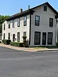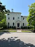 1845 circa | Town's best example of Greek Revival architecture. Porch and wing (1940s) are modern but built to be compatible with the main portion of the house. Two–and–a–half-story home with frieze "lie–on–your–stomach" windows in the attic.[31] |