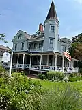 1890 circa | Large 2+1⁄2-story Victorian home with tower, hipped roof with dormers.[22] |
