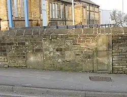 In 1713 Eccleshill Hall was built for Dr Stanhope, located to the east of Stony Lane at the site of previous Eccleshill Halls, on what is now Victoria Road.[3] The hall was demolished in 1878 and all that remains are parts of stone gateposts embedded in a roadside wall.[4]