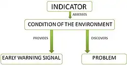 3. ^ a b Dale, V. H.; Beyeler, S. C. (2001), "Challenges in the development and use of ecological indicators", Ecological Indicators, 1 (1): 3–10, doi:10.1016/S1470-160X(01)00003-6