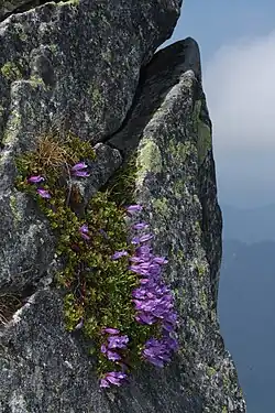 The beauty of meadows is very popular amongst hikers. Wildflowers that are found in this ecoregion are the tiger lily, glacier lily, bead lily, queen's cup, columbine, aster, trillium, pearly everlasting, valerian, skyrocket, shooting star, penstemon, lousewort, mountain bog gentian, monkey flower, monkshood, bluebell, bellflower, bleeding heart, Tweedy's lewisia, balsamroot, wild orchids and more.[11] The wildflowers are at their peak in the meadows and along streams from mid-July to mid-August.[11] The parklands of the Mountain Hemlock Ecoregion draw their distinct characteristics from the climate and topography.[6]