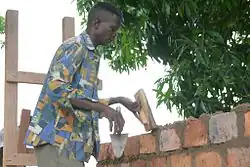 A bricklayer in Paoua, Central African Republic.