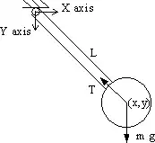 M * y'' = - T * (y / L) - M * g