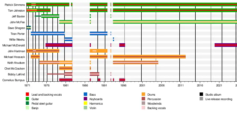 - ^ a b c d e f Lifton, Dave (November 7, 2019). "Doobie Brothers Lineup Changes: A Complete Guide". Ultimate Classic Rock. Retrieved February 7, 2021.
