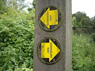 The Eddisbury Way is a footpath running from Frodsham to Higher Burwardsley within the English county of Cheshire. The total length of the trail is 16.5 miles (26.6 km).[1] The path is waymarked with yellow arrows containing the words Eddisbury Way.