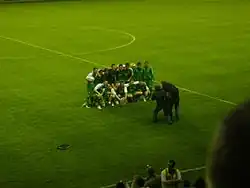 Both clubs were relegated to the second tier after finishing in the bottom two positions of the 2013–14 Scottish Premiership. This meant that the city of Edinburgh was left without representation in the top tier of the Scottish league system for the first time in its history.[14] Hearts won the 2014–15 Scottish Championship and earned an immediate promotion back to the top tier. Hibs won promotion in 2016–17, which meant that top-flight league derbies were resumed in 2017–18. Meanwhile, the teams were drawn together in the Scottish Cup in three consecutive seasons: 2015–16,[15] 2016–17[16] and 2017–18.[17] Hibs won the first two ties after replays[18][19] and went on to win the 2015–16 competition, while Hearts won the third tie.