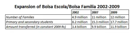 - ^ Glewwe, Paul; Anna Lucia Kassouf (August 2010). "The Impact of Bolsa Escola/Familia Conditional Transfer Program on Enrollment, Dropout Rates and Grade Promotion in Brazil" (PDF). Archived from the original (PDF) on 2011-07-20.