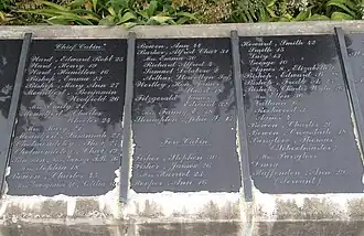| The nine Bishop family members who emigrated on the Charlotte Jane are inscribed on marble plaques in Cathedral Square | |