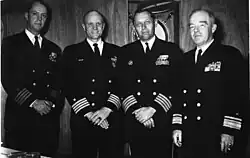 Feightner received orders in February 1959 to relieve the air wing commander of Carrier Air Group Ten (CVG-10) on the USS Forrestal (CV-59) that was deployed in the Mediterranean.[72] He continued to serve as CAG-10 when the air wing embarked on the USS Essex (CV-9) the following month and returned to the "Med" for another tour.[73] From February to July 1960, Feightner served on the staff of Carrier Air Group Four (CVG-4) where he helped write some of the first Naval Air Training and Operating Procedures Standardization (NATOPS) manuals with the goal of reducing the Navy's aircraft accident rate.[74] In July 1960, he reported to the Naval War College in Newport, Rhode Island, to study areas such as military tactics and wargaming. Feightner graduated in 1961.[75]