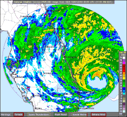 ![]() Satellite image of Hurricane Matthew east of the Florida Peninsula on October 6 | |