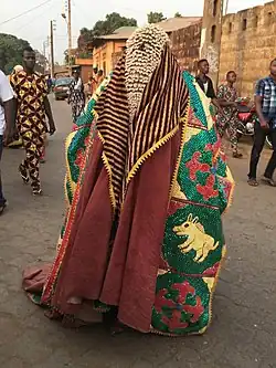 Egungun Festival is a festival that is celebrated amongst the Yoruba people, which is celebrated annually and has been passed successively down to generations. "The ensuing festival goes on for several days and strengthens the bonds that unite families and communities with departed ancestors."[4] It is believed to help develop trade and commerce and generally bond the people of Yorubaland together regardless of their religious beliefs.[10] Members of the society dance to marketplaces, wearing their masks to represent the deceased spirits of their ancestors, the spirit to be worshipped is solely decided by Ifa Oracle.[11]