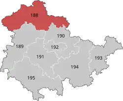Eichsfeld – Nordhausen – Kyffhäuserkreis is an electoral constituency (German: Wahlkreis) represented in the Bundestag. It elects one member via first-past-the-post voting. Under the current constituency numbering system, it is designated as constituency 188. It is located in northern Thuringia, comprising the districts of Nordhausen, Eichsfeld, and Kyffhäuserkreis.[1]