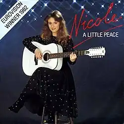 "Ein bißchen Frieden" (pronounced [aɪn ˈbɪsçən ˈfʁiːdn̩]; lit. "A Bit of Peace") is a song recorded by German singer Nicole, with music composed by Ralph Siegel and German lyrics written by Bernd Meinunger. It represented Germany in the Eurovision Song Contest 1982, held in Harrogate, resulting in the country's first ever win at the contest.