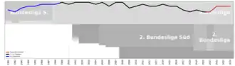 The club has its origin as SG Praunheim, with Praunheim establishing its women's football department in 1973.[1] This iteration of the club did not participate in the national championship or cup tournaments, but nonetheless was included in the nascent Bundesliga at its inception in 1990. In the early 1990s Praunheim achieved mid-table results with a tendency for slight improvements from season to season.