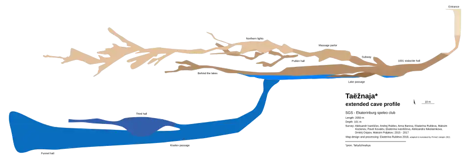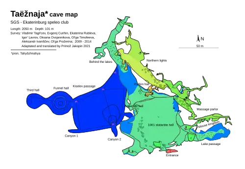 58. ^ Curihin, Evgenij (1 December 2020). "Таежная" [Taëžnaja (cave)]. speleoatlas.ru – Caving atlas of Russia and the Commonwealth of Independent States (CIS) (in Russian). Русское географическое общество / Russian Geographic Society. Retrieved 21 July 2021.