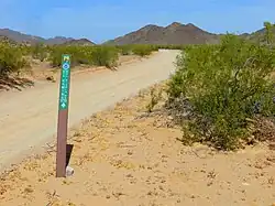 El Camino del Diablo (Spanish, meaning "The Devil's Path"), also known as El Camino del Muerto, Sonora Trail, Sonoyta-Yuma Trail, Yuma-Caborca Trail, and Old Yuma Trail,[2] is a historic 250-mile (400 km) road that passes through some of the most remote and inhospitable terrain of the Sonoran Desert in Pima County and Yuma County, Arizona. The name refers to the harsh, unforgiving conditions on the trail.[3]