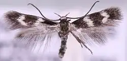 The wingspan is 7–9 millimetres (0.28–0.35 in). Adults are on wing in May and June.[1]
