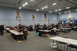 Voting ends at 10 pm (or once all voters present in a queue at or outside the polling station at 10 pm have cast their vote).[96] Presiding officers are responsible for sealing ballot boxes in polling stations (election and polling agents appointed by candidates can also apply their own seals to the boxes) and transporting them 'directly and without delay' to the central counting location for the constituency.[67] Multiple counts can take place at the same location, for example when a town is covered by two or more constituencies. Returning officers are required to "take reasonable steps to begin counting ... as soon as practicable within the period of four hours starting with the close of the poll" (i.e. no later than 2 am).[97][98] In most constituencies, upon receipt by the returning officer at the central counting location, ballot boxes are unsealed and emptied, and ballot papers are verified and counted immediately. Ballot papers are verified manually and counted by hand. As with Polls and Postal Votes, the counting process is observed by Election Observers who may be individuals or nominated by e.g. parties.[70]